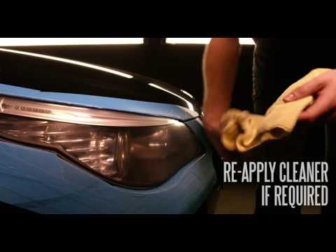 Werk altijd in de schaduw en zorg dat de koplampen goed schoon en droog zijn voordat je begint. Zo hecht de coating beter én voorkom je vlekken.